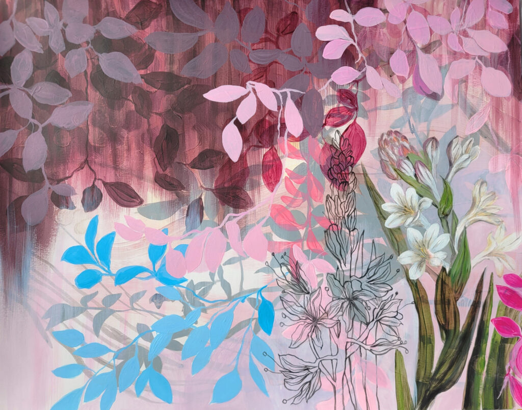 Keywords: painting, acrylic, paper, contemporary, modern, large, decor, original painting, expressionism, floral, Asphodel, mythology, edible wild plant, fantasy, figurative, pink, drawing